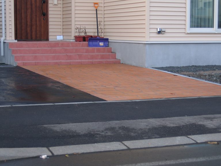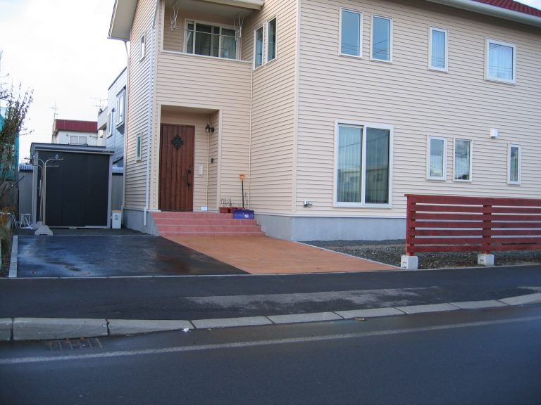 ウッドフェンス+ステンシルコンクリート+アスファルト